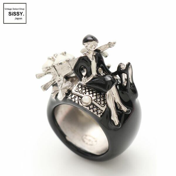 ■シャネル■ ココマーク カメリア リング 指輪 黒 アイボリー 13K 約10号 【CHANEL】(35062520)