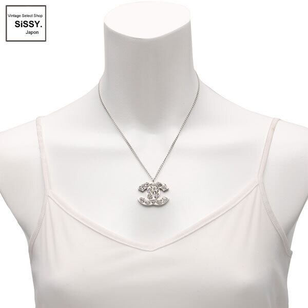■シャネル■ ココマーク ネックレス ハート型 ラインストーン シルバー 04A 【CHANEL】(A0321H11-18)