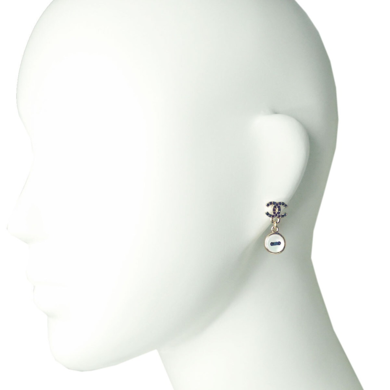 ■シャネル■ ピアス ボタンモチーフ ココマーク ブラックストーン ゴールド 02A 【CHANEL】(35041906)