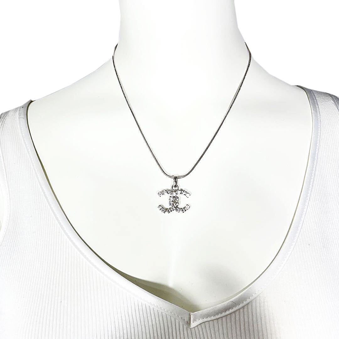 CHANEL シャネル ネックレス ココマーク ラインストーン シルバー 00A