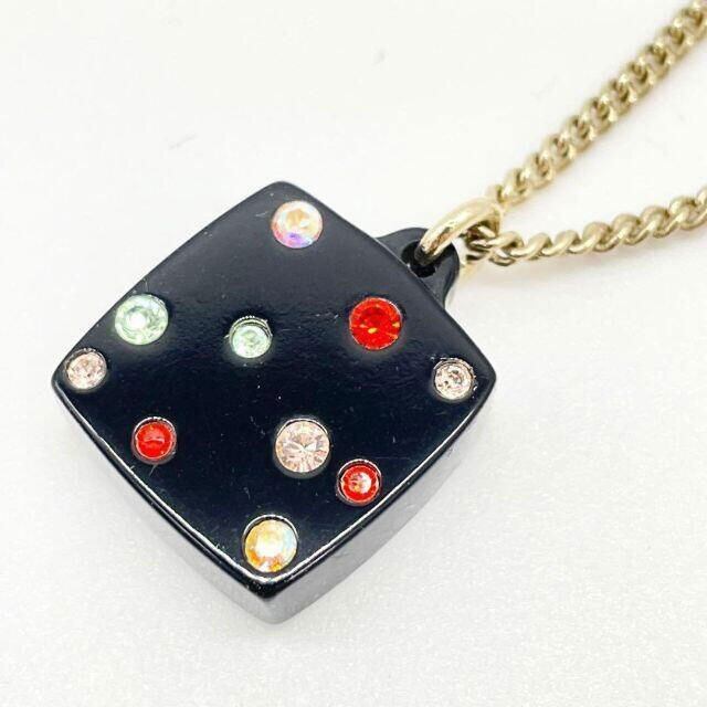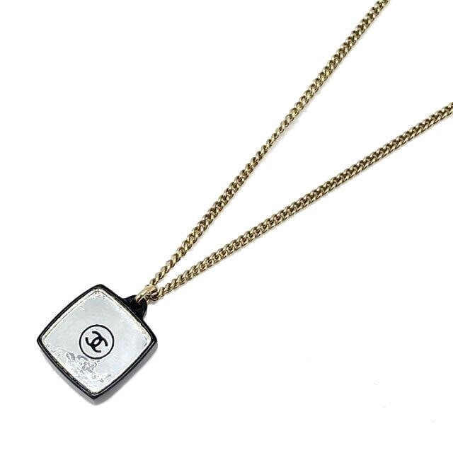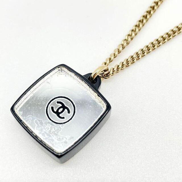 CHANEL シャネル ネックレス ミラープレート ココマーク マルチラインストーン プラスチック ブラック シルバー 04A