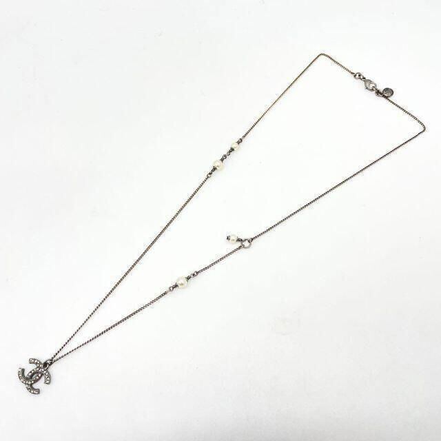CHANEL シャネル ネックレス ココマーク ラインストーン フェイクパール ガンメタ A18V