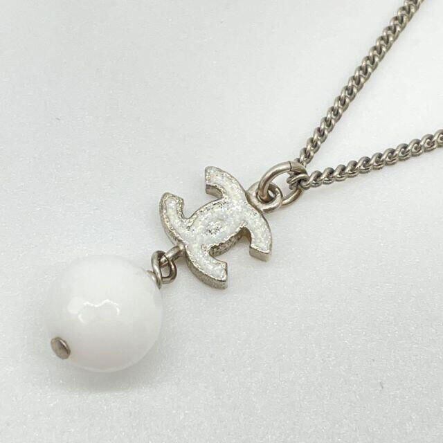 CHANEL シャネル ネックレス ボール ラメココマーク ホワイト シルバー B10A