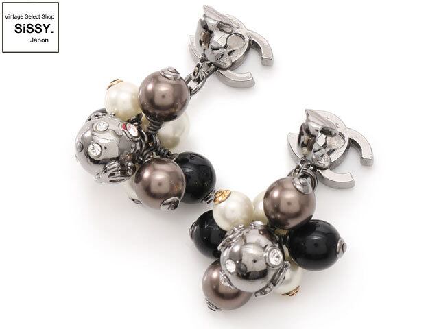 シャネル ■CHANEL■ イヤリング フェイクパール ラインストーン メタル ガンメタリック ブラック ホワイト (33P30710)