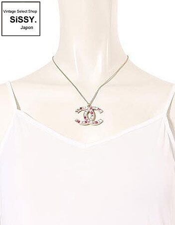 シャネル ■CHANEL■ ココマーク ネックレス ラインストーン付 シルバー ピンク 05P(32C22970)