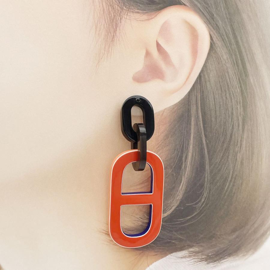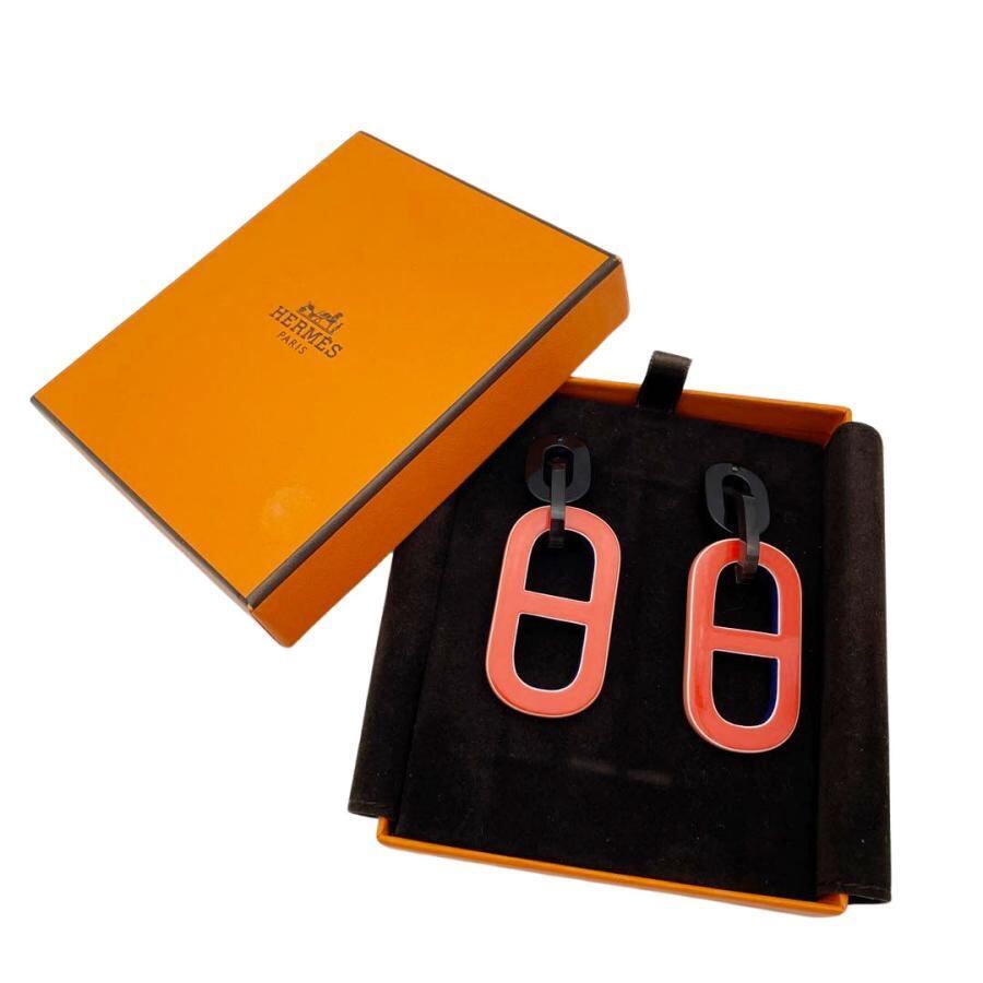 HERMES エルメス ピグマン ピアス シェーヌダンクル 馬蹄 ラッカーウッド バッファローホーン オレンジ/ピンク系