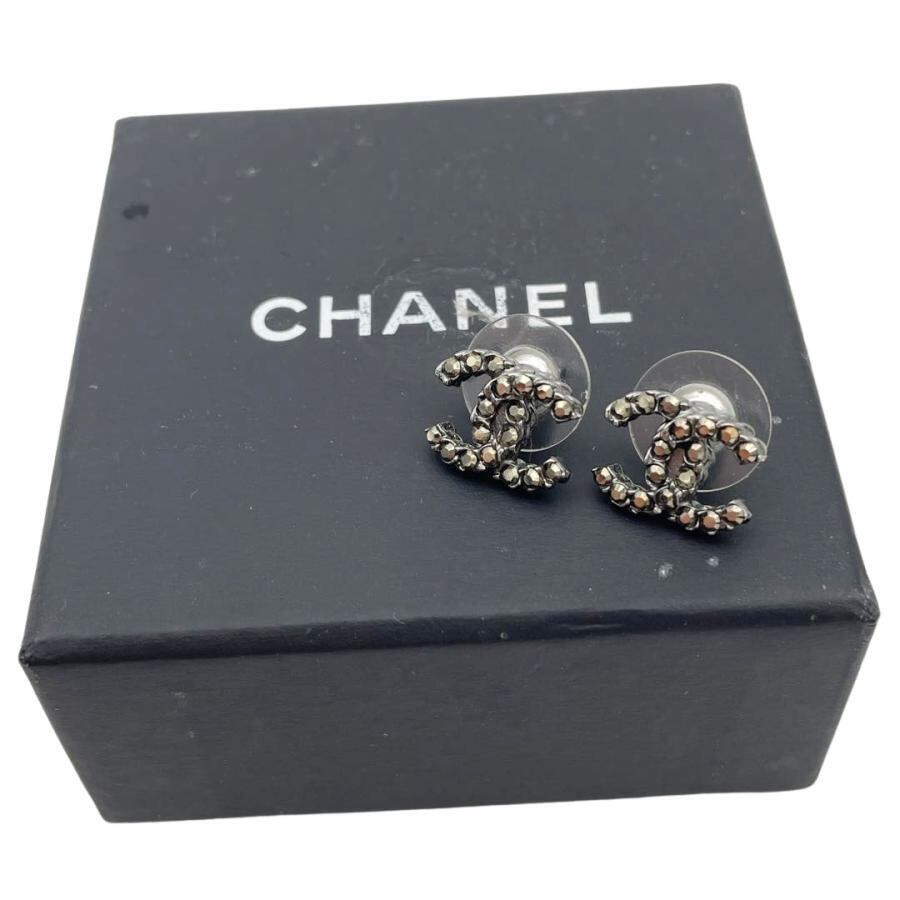 CHANEL シャネル ピアス ココマーク スタッズ ガンメタ ブロンズ系 C18V