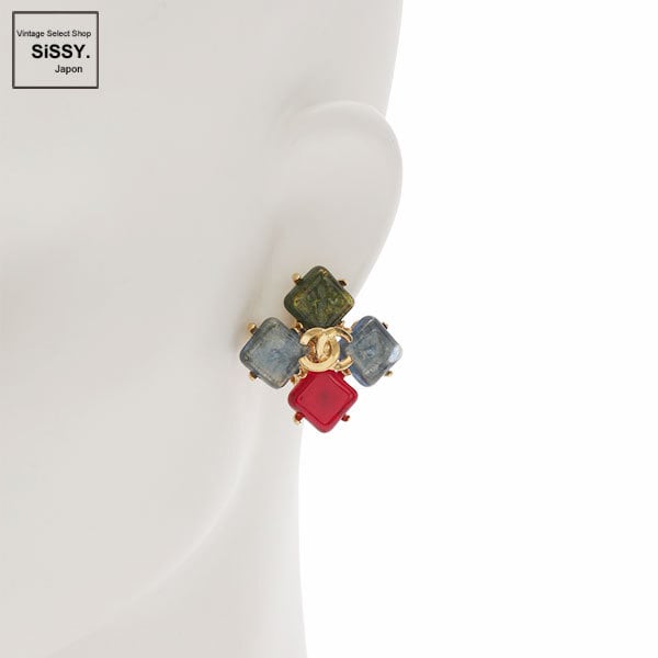 ■シャネル■ イヤリング グリポア ココマーク メタル カラーストーン ゴールド レッド ブルー グリーン 97A 【CHANEL】(33C13108)